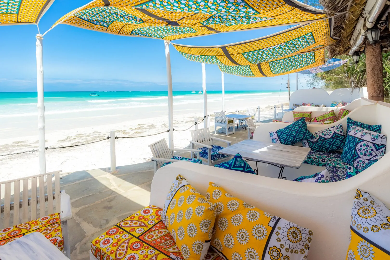 Dispone di 18 comode camere, 7 esclusivi beach cottages e 12 lussuose suites. Tutte le camere sono dotate di aria condizionata, minibar, telefono e accesso internet. Le camere Sea Breeze godono di una vista parziale sul mare e sono rese affascinanti dai vari dettagli di genere Swahili e dai loro soffitti in stile Lamu. Le Ocean View godono di una magnifica vista mare, sono dotate di una veranda e di un giardino privati di fronte ad una vista mozzafiato sull’Oceano Indiano. I Beach Cottage sono costruiti in stile kenyano, tetto di palma “Makuti”, immersi nel verde del prato dominato da piante Baobab magnificenti e con una vista diretta sull’Oceano Indiano.